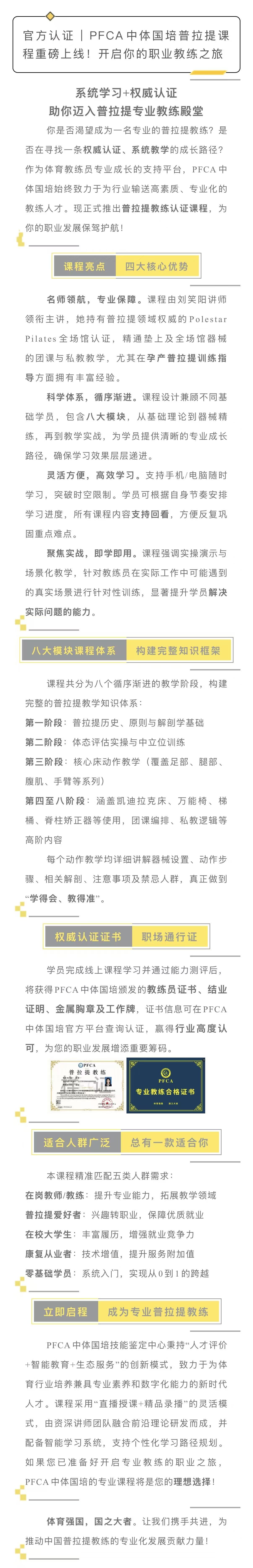 官方认证 | PFCA中体国培普拉提课程重磅上线!开启你的职业教练之旅
