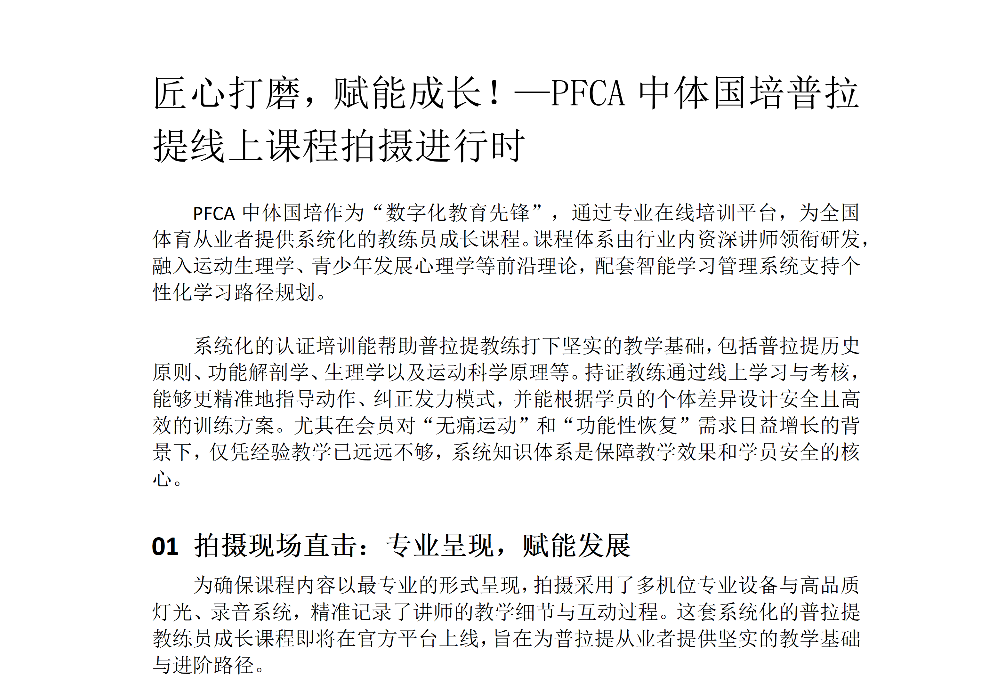 匠心打磨,赋能成长!——PFCA中体国培普拉提教练线上课程拍摄进行时