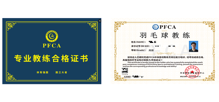 PFCA中体国培聚焦体育教练员专业成长,为行业人才培养提供标准化认证支持。课程结束考核合格后学员将获得:PFCA羽毛球教练员证书、结业证明、金属胸章、工作牌以及学员内部学习教材。证书可通过PFCA中体国培官网查询认证。
